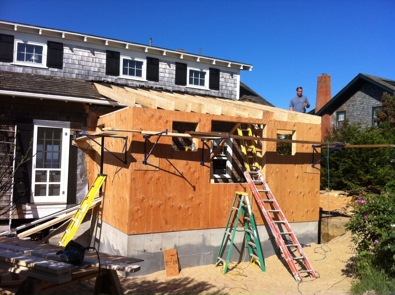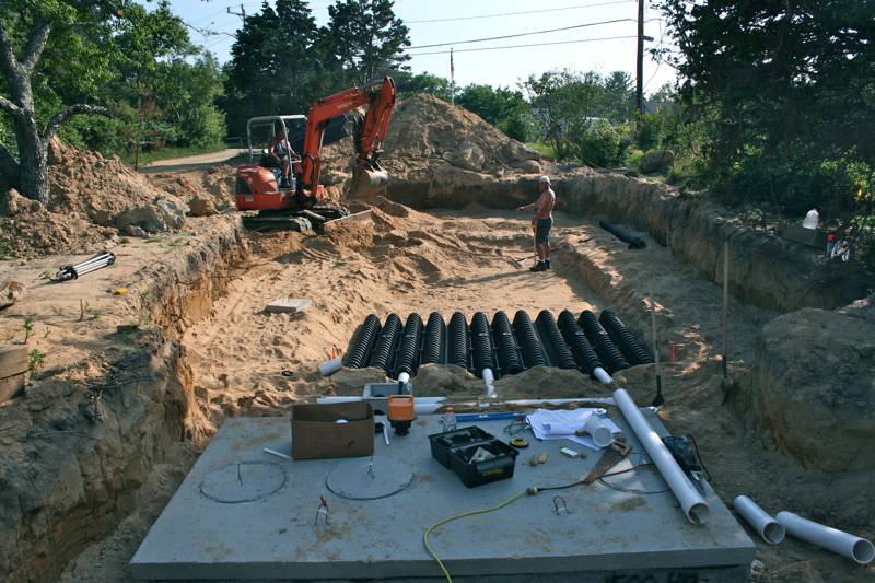Lest we ever forget, the winter during the construction was particularly snowy in Boston and rainy on the Cape. Thus, as they dug the hole, it constantly filled in with water. I visited the house each week, and was amazed to see the swamp under our house. Many times the water was over my knees and I was afraid to wade into it, thinking I might get stuck in the muddy clay.